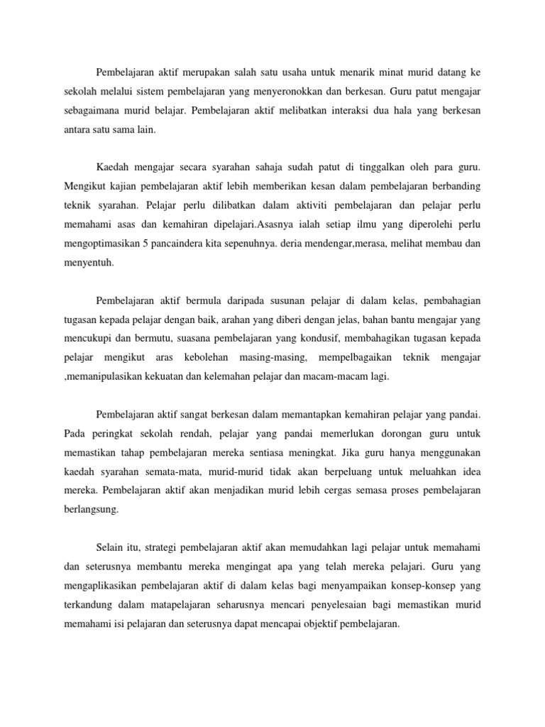 Noor Hisham Md Nawi Pusat Pengajian Bahasa Pembangunan Insaniah Universiti Malaysia Kelantan Abstrak Pendekatan dan kaedah pengajaran dan pembelajaran PP sentiasa berubah. Respon daripada murid terhadap arahan guru. Ini memberikan cabaran kepada guru dalam usaha untuk memberikan pendidikan yang seimbang kepada murid tanpa mengira latar belakang dan kaum.